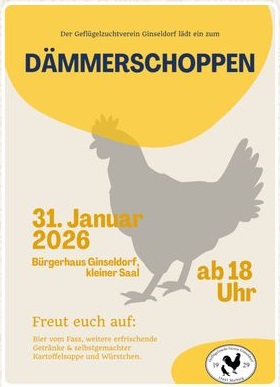 Der Geflügelzuchtverein Ginseldorf lädt ein zum Dämmerschoppen am 31. Januar im Bürgerhaus ab 18:00 Uhr